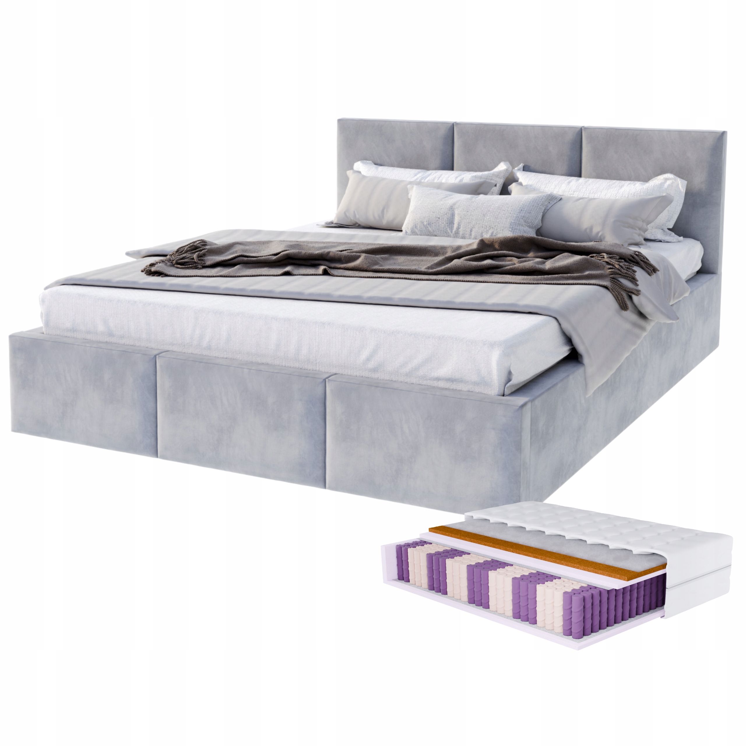 Łóżko 160x200 TAPICEROWANE sypialniane małżeńskie Z MATERACEM POJEMNIKIEM Informacje dodatkowe pojemnik na pościel otwierany do góry ze stelażem z materacem z zagłówkiem